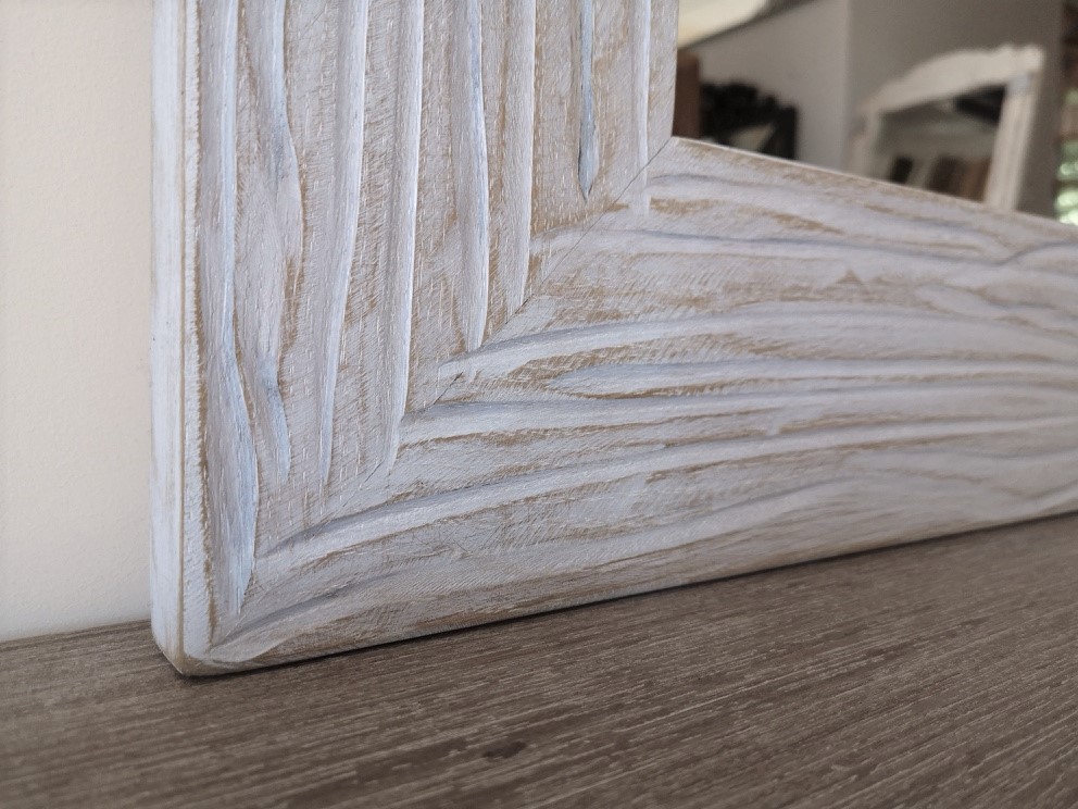 Rama jest ręcznie żłobiona, bielona i przecierana.