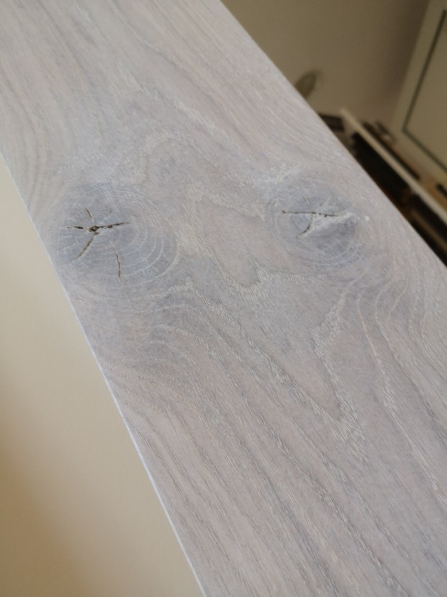 Rama posiada sęki, pęknięcia, naturalne ubytki drewna, a także zróżnicowane usłojenie.