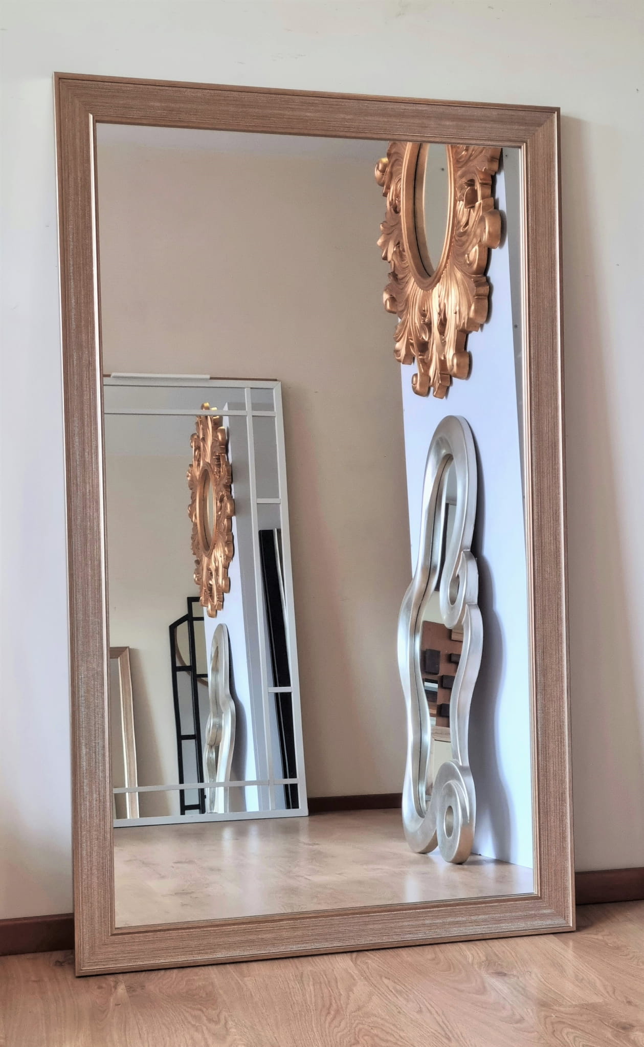 Duże lustro w szampańskiej ramie 90x150