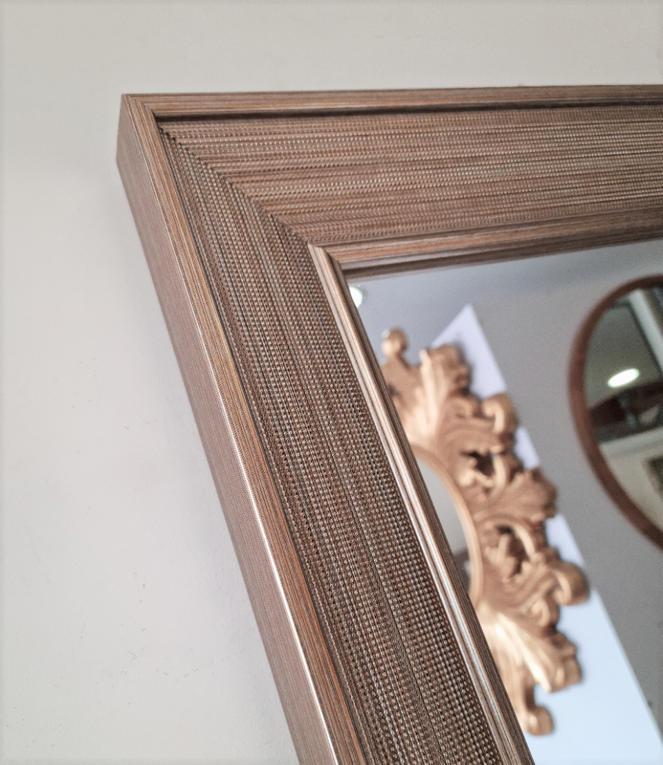 Efektowne duże lustro wiszące z pięknie frezowaną ramą