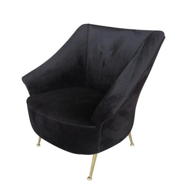 Fotel Marguesa łączy w sobie wygodne siedzisko z eleganckim i nowoczesnym wykończeniem w formie błyszczących, złotych nóżek. Luksusowego charakteru dodaje mu miękka welurowa tkanina obiciowa w kolorze czarnym.