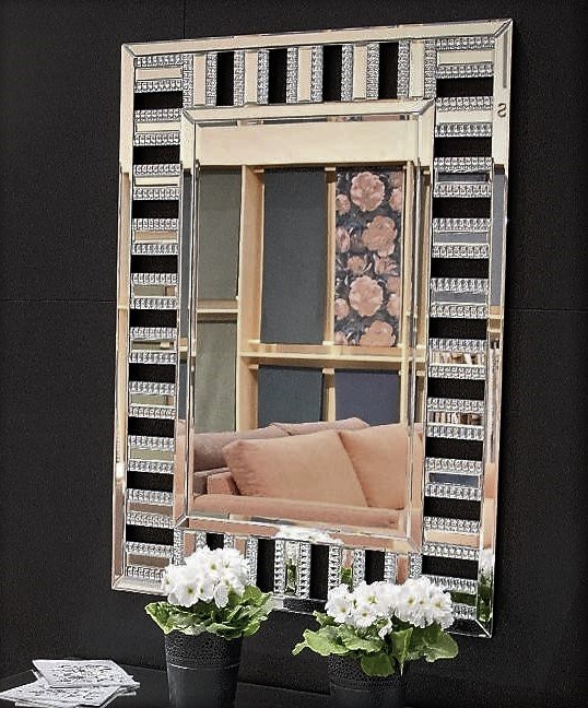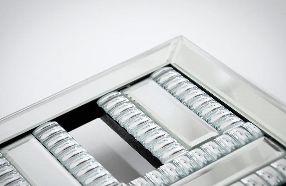 Rama lustra wykonana ze szlifowanych kawałków kryształowego lustra, a także szklanych kryształków.