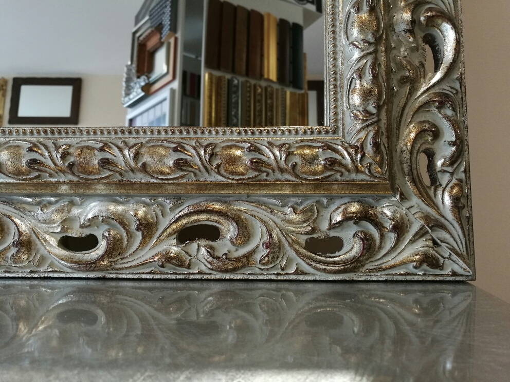 Rama wykończona szlagmetalem w kolorze szampańskie srebro.