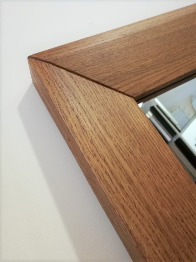 Rama skośna do wewnątrz, wykonana z litego drewna dębowego.