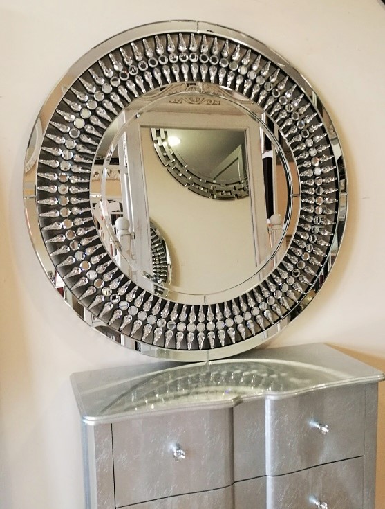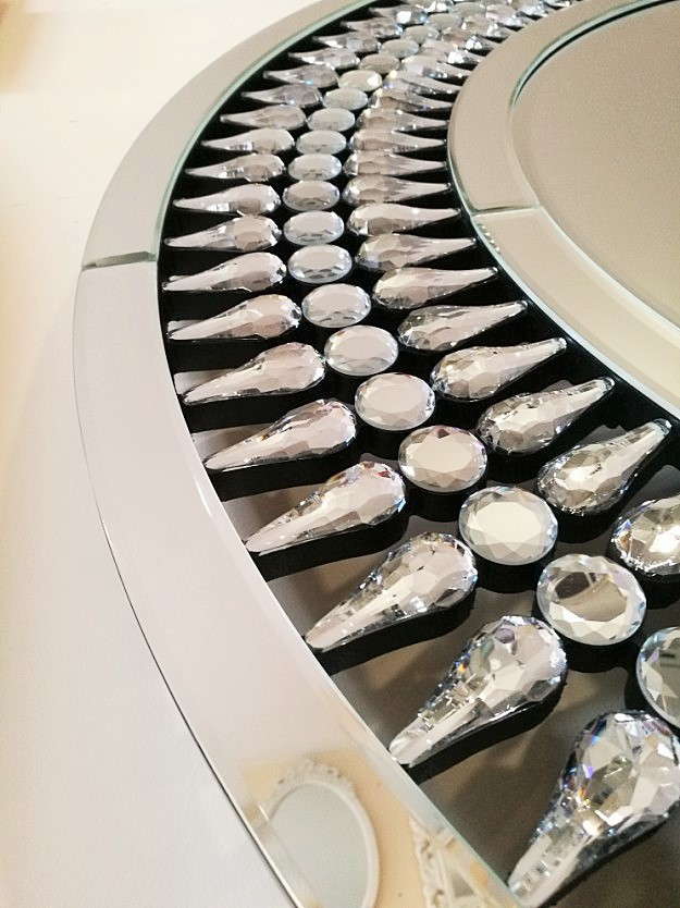 Lustro dekoracyjne z okrągłą ramą kryształową 80x80