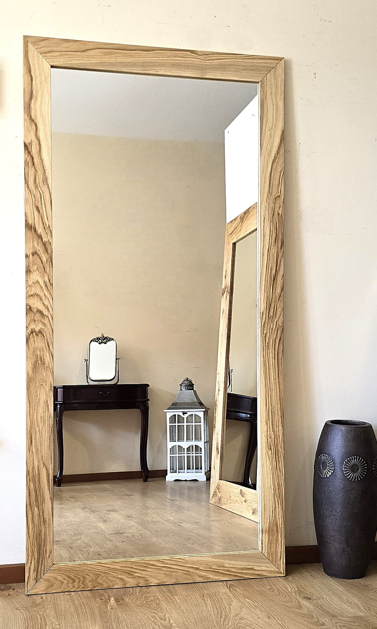 Lustro do przedpokoju z ramą drewnianą Dąb Bagienny Naturalny 90 x 180