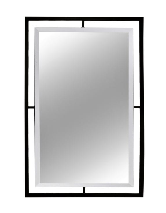 Proste lustro z ramą wykonaną z czarnej stali nierdzewnej. W środku umieszczono prostokątne, kryształowe lustro z elegancką fazą na całym obwodzie. Lustro doskonale sprawdzi się w nowoczesnych, minimalistycznie urządzonych wnętrzach. Dobrze wkomponuje się w modny styl loftowy.