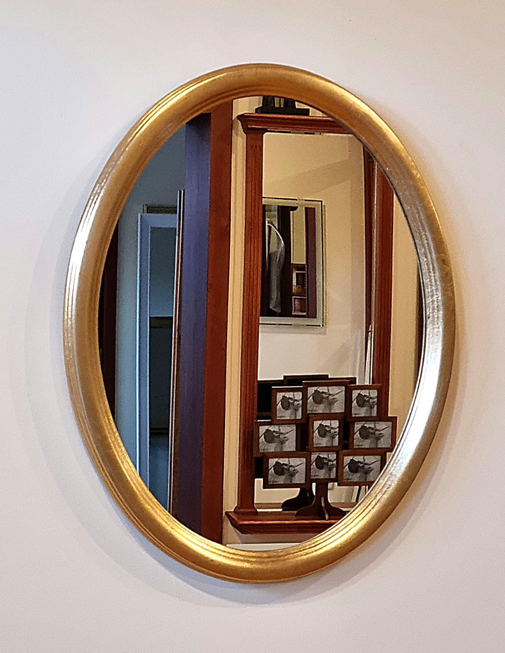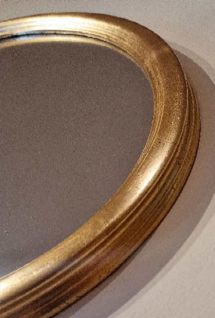 Rama wykonana z mdf i wykończona złotym szlagmetalem.