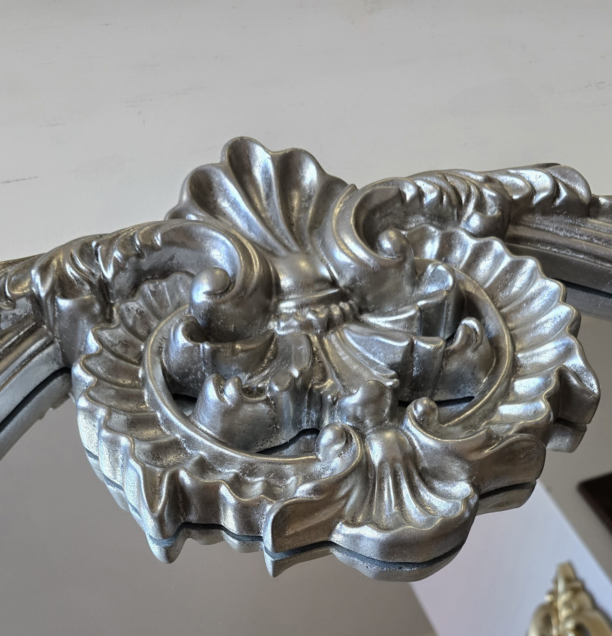 Ramę wykonano z masy żywicznej i wykończono srebrnym szlagmetalem.