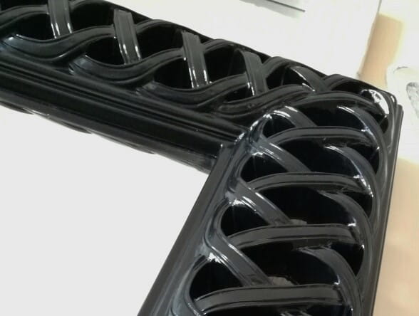 Rama wykonana jest ze specjalistycznej masy ramiarskiej i wykończona w kolorze czarnym.