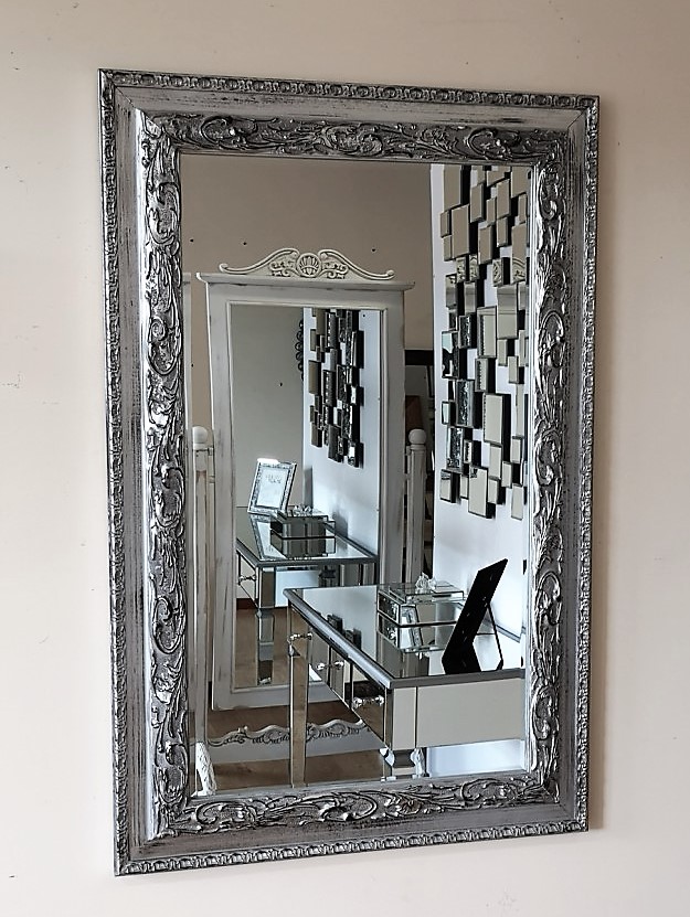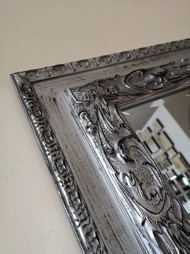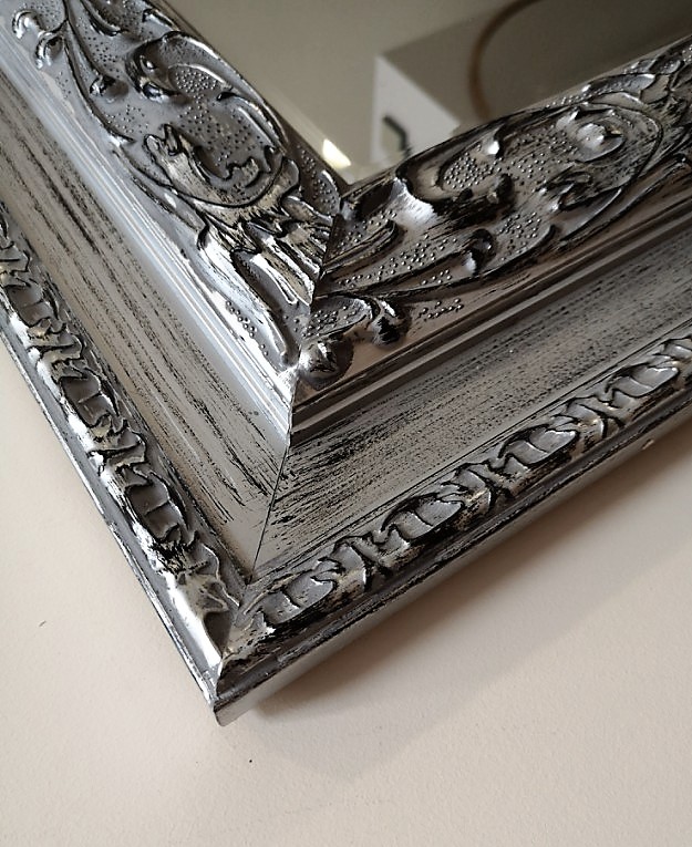 Lustro z piękną ramą drewnianą srebrne 75x115
