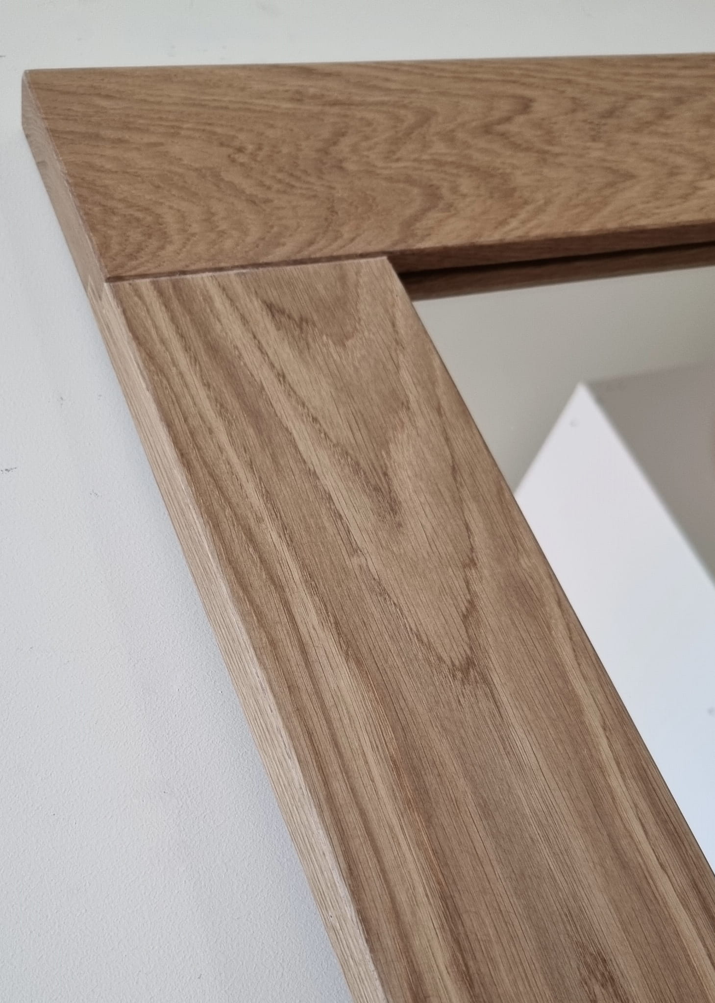Ponadczasowe lustro w pięknej dębowej ramie. Ramę cechuje prostota i niezwykła elegancja. Do jej wykonania użyto litych dębowych desek. Ich zastosowanie nie jest przypadkowe, celowo wybrano te z bogatym usłojeniem, aby podkreślić naturalne piękno drewno. Rama została wykończona w kolorze naturalnym (olej półmatowy).