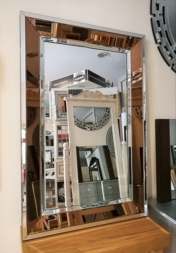 Rama lustra skośna, wykonana z kryształowego lustra (lustro srebrne i brązowe)