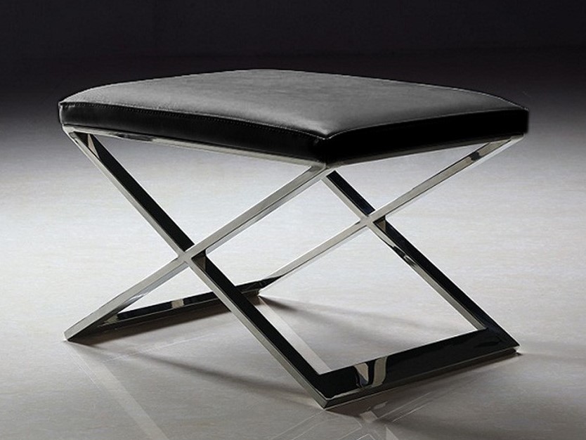 Nowoczesne siedzisko ze stali i czarnej skóry