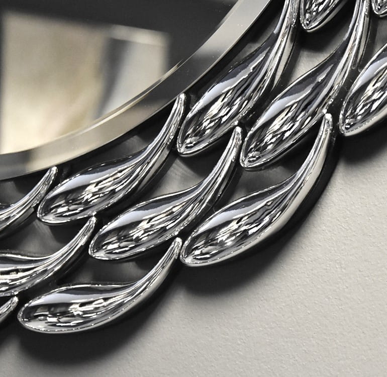 Rama jest ażurowa, złożona ze szklanych lustrzanych elementów w kształcie łezek.