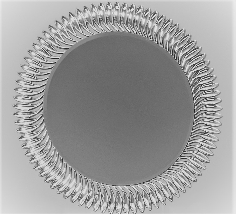 Rama jest ażurowa, złożona ze szklanych lustrzanych elementów w kształcie łezek.