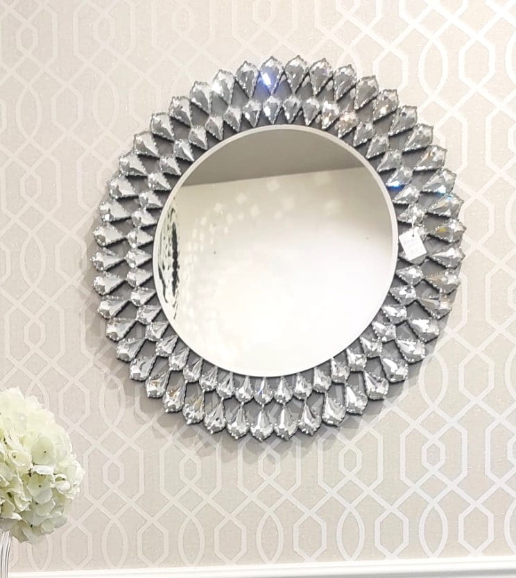 Rama lustra okrągła, wykończona eleganckimi elementami lustrzanymi.