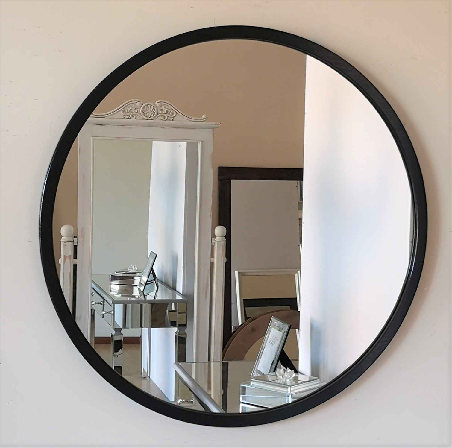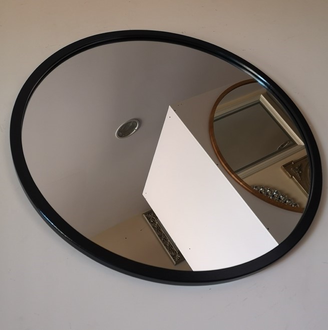 Okrągłe lustro w prostej czarnej ramie 70x70