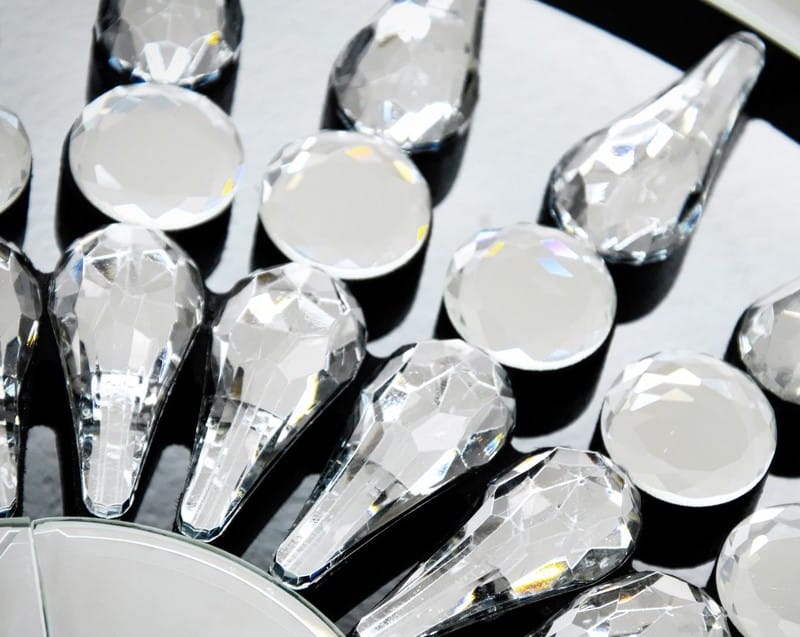 Rama lustra owalna, ażurowa, wykończona szklanymi kryształkami.