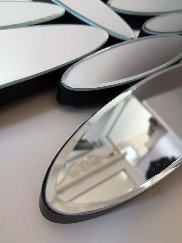 Kryształowe elementy lustrzane są szlifowane fazą.