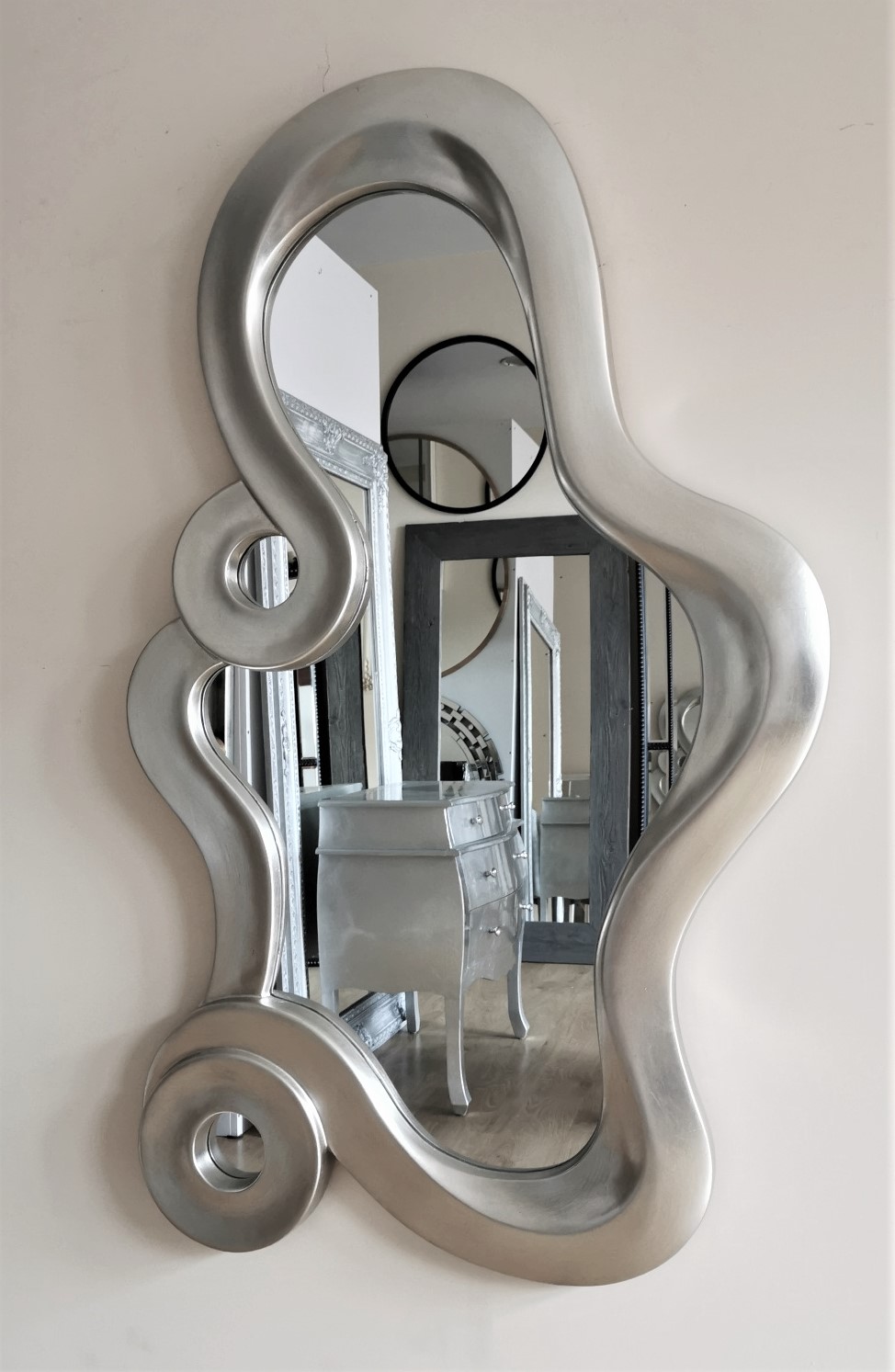 Srebrne lustro dekoracyjne z fantazyjną srebrną ramą