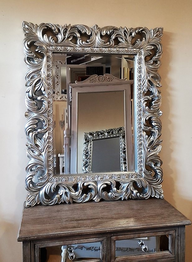 Srebrne lustro z ażurową ramą 80x100