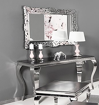 Podstawa konsoli wykonana ze srebrnej stali nierdzewnej polerowanej.