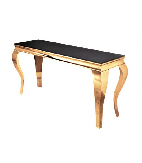 Stylowa konsola ze złotej stali i czarnego szkła 150x40x74
