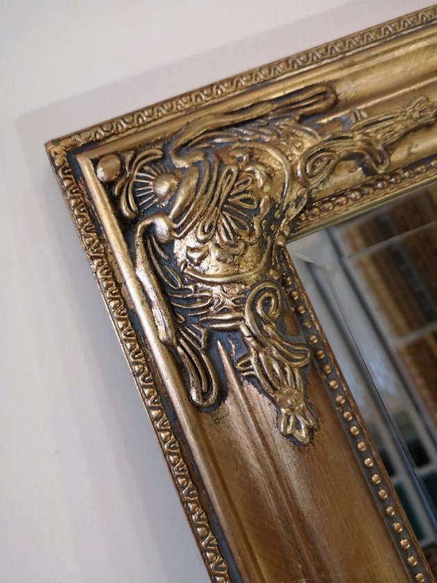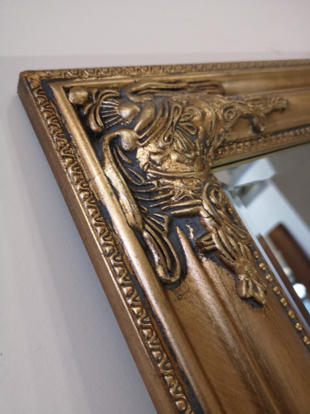 Rama lustra wykonana jest z drewna zdobienia i żywicy ramiarskiej (zdobienia).