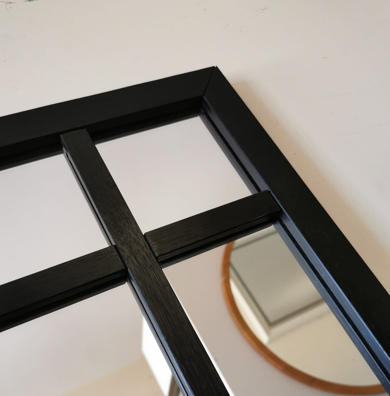 Ekskluzywne lustro loftowe oprawione w minimalistyczną ramą wykonaną z litego drewna dębowego. Duże wymiary zewnętrzne lustra to cecha, dzięki której każde wnętrze zyska optycznie dodatkową przestrzeń i rozświetli pomieszczenie. Lustro doskonale wkomponuje się w modny styl loftowy, ale świetnie sprawdzi się też w innych aranżacjach. Jego wizualna lekkość również jest nie do przecenienia. Drewno dębowe, z którego wykonano ramę i szprosy, wykończono w kolorze czarnym półmatowym. W przeciwieństwie do opraw wykonanych z metalu, rama dębowa wygląda szlachetniej, pozostawiając subtelną strukturę, typową dla tego gatunku drewna.