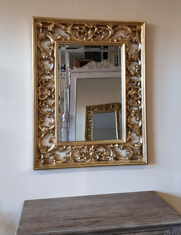 Złote lustro z ażurową ramą 70x90